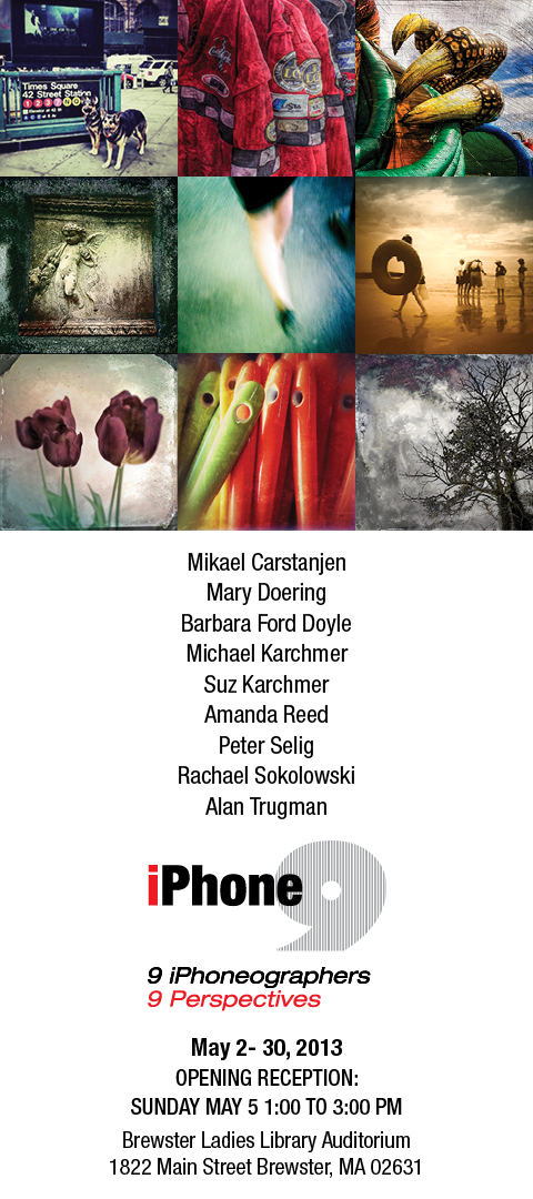 Michael and Suz Karchmer's article is an 8-page spread about iPhoneography offering tips on making a good image with your mobile device and showcasing work by the iPhone study group "iPhone 9." ArtSynergies members Alan Trugman, Mary Doering and Barbara Ford Doyle are part of the iPhone 9 group.